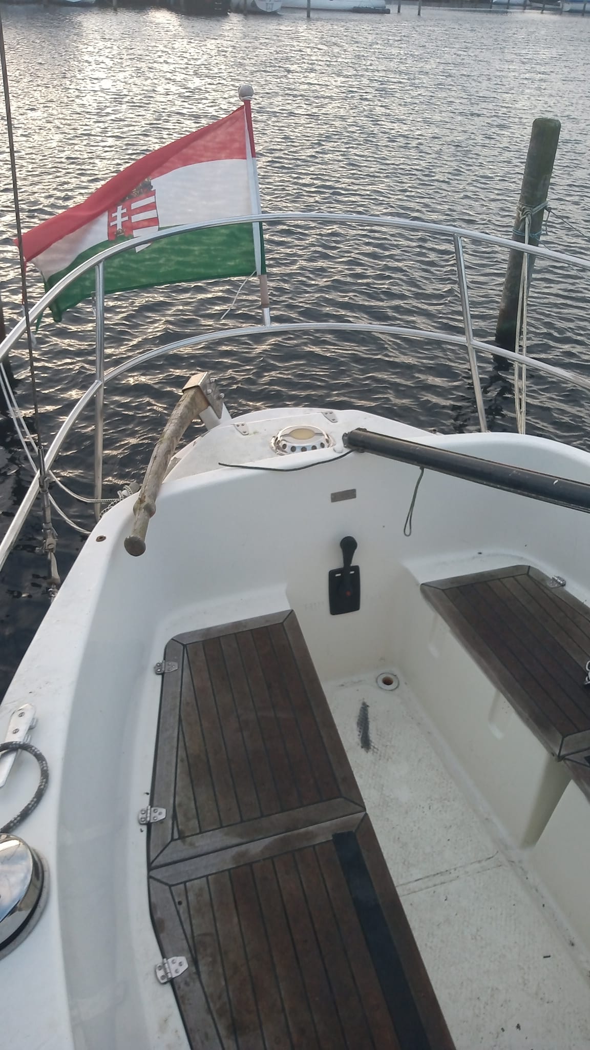 | Sejlbåd med hvidt skrog Pramilla Øer sat på ruf med rød skrift |